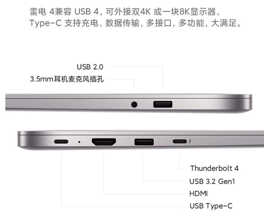 小米 RedmiBook Pro 15 标配 16GB DDR4-3200 内存、512GB 固态硬盘,配备雷电 4 等接口,电源键支持指纹识别功能。产品内置小爱同学语音助手,标配 100W 电源适配器。