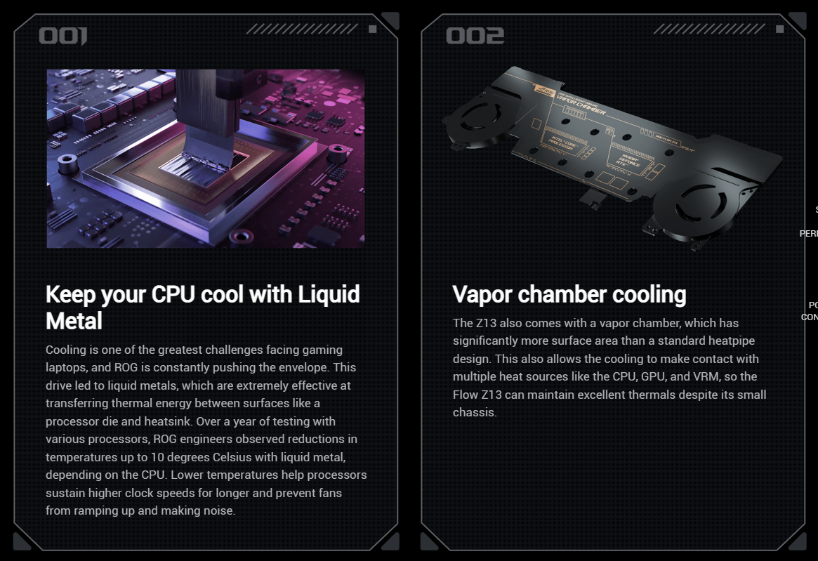 ROG Flow Z13 2022 款搭载英特尔 12 代酷睿标压处理器,提供 i5-12500H、i7-12700H、i9-12900H 可选,采用液态金属导热、真空均热板散热。笔记本除了不带核显的版本,还提供 RTX 3050、RTX 3050 Ti 显卡可选,功率最高 40W。