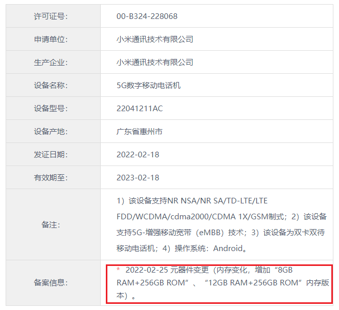 2 月 26 日消息,小米 Redmi K50 系列昨日发生电信设备进网许可变更,公布了三款手机的存储容量配置信息。