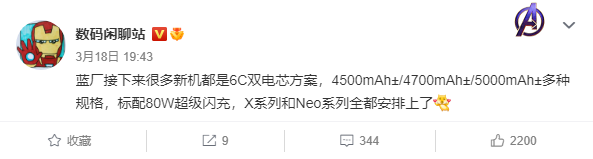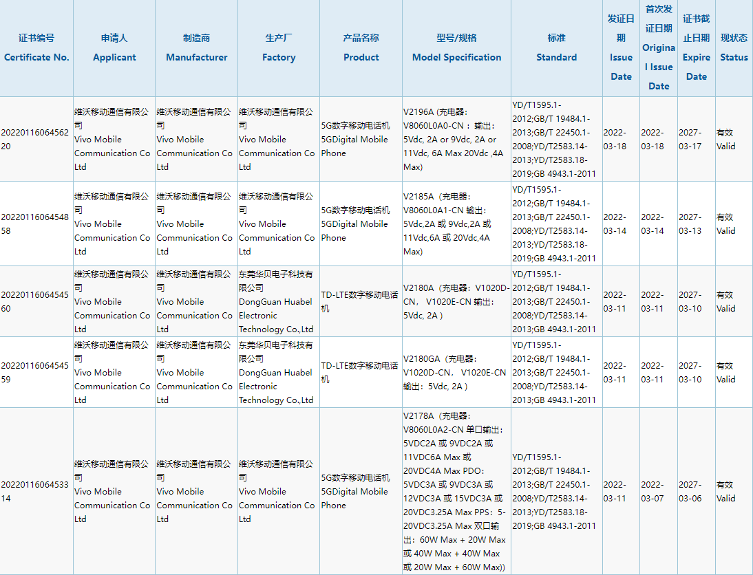 一款型号为 V2196A 的 vivo 新机通过了国家质量认证,标配 V8060L0A0-CN 充电器,支持 80W 快充。