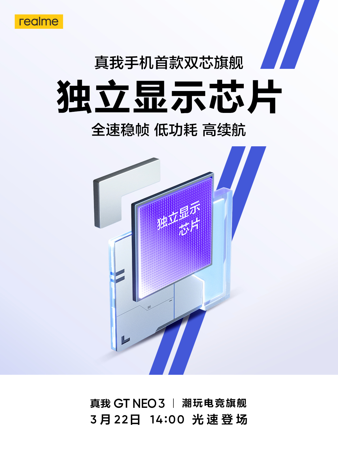 截至目前,realme 真我GT Neo3的参数已经基本被曝光了出来,除了天玑8100芯片外,真我GT Neo3还配备了一块独立显示芯片,用更低的功耗实现了更稳定的游戏帧率。