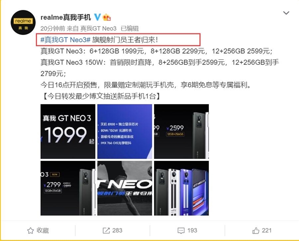 ITBEAR科技资讯3月22日消息,realmeGTNeo3发布,官方称“旗舰射门员王者归来”。