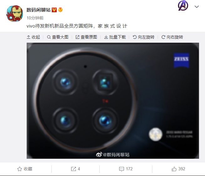 ITBEAR科技资讯3月 2 4 日消息: 今天,@数码闲聊站晒出了vivo新机的背部图片。从图中看出,该机采用圆形矩阵四摄像头,但不包括闪光灯,镜头右上角有经典的蔡司小蓝标。据博主介绍,vivo新旗舰手机、折叠屏和平板电脑都将采用类似设计,预计包括将要到发布的X80系列和X Note、X Fold、vivo pad等产品。