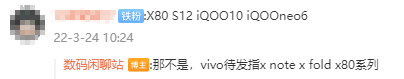 博主还表示,vivo最近入网了4台骁龙8 Gen1 旗舰和2台天玑 9000旗舰,涵盖了中高端折叠屏全焦段旗舰,他认为将于下月集中发布。