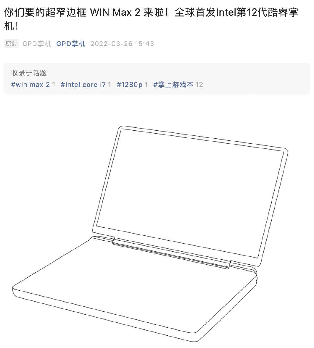 ITBEAR科技资讯3月26日消息,今日下午,GPD掌机官宣新款WINMax2掌机,并附上外观轮廓图,称将在掌机上首发12代酷睿。