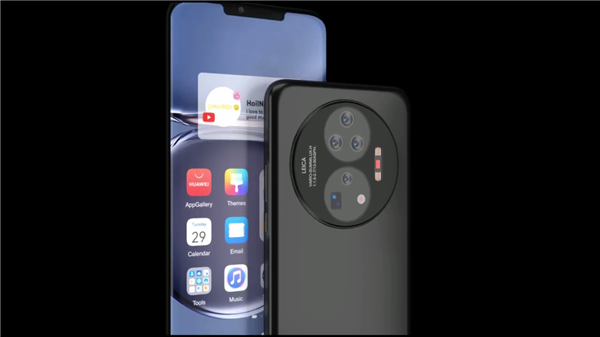 徕卡字样仍然出现在背面的摄像头部分,构型有点P50 Pro和Mate 40 Pro的组合,中间大圆套内部两个小圆,多达5个摄像头,包括方形潜望式变焦头。