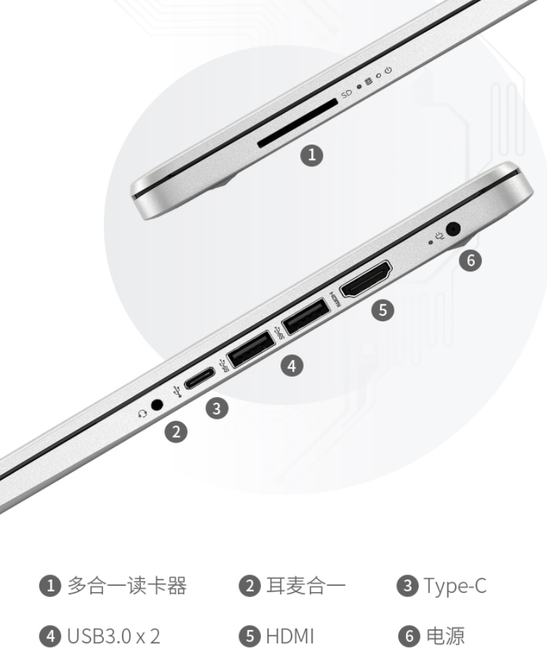 接口方面,惠普星 14 青春版配备读卡器、USB-C、USB 3.0 x 2、HDMI 接口、耳机孔,采用圆形电源孔,支持 Wi-Fi 6。