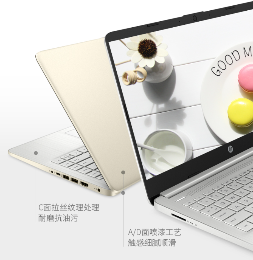 惠普星 14 青春版厚度约为 17.9mm,拥有金、银两款配色,A / D 面喷漆工艺,C 面拉丝纹理,重量约 1.47kg。该机电池容量 41Wh,可 45 分钟充电 50%。