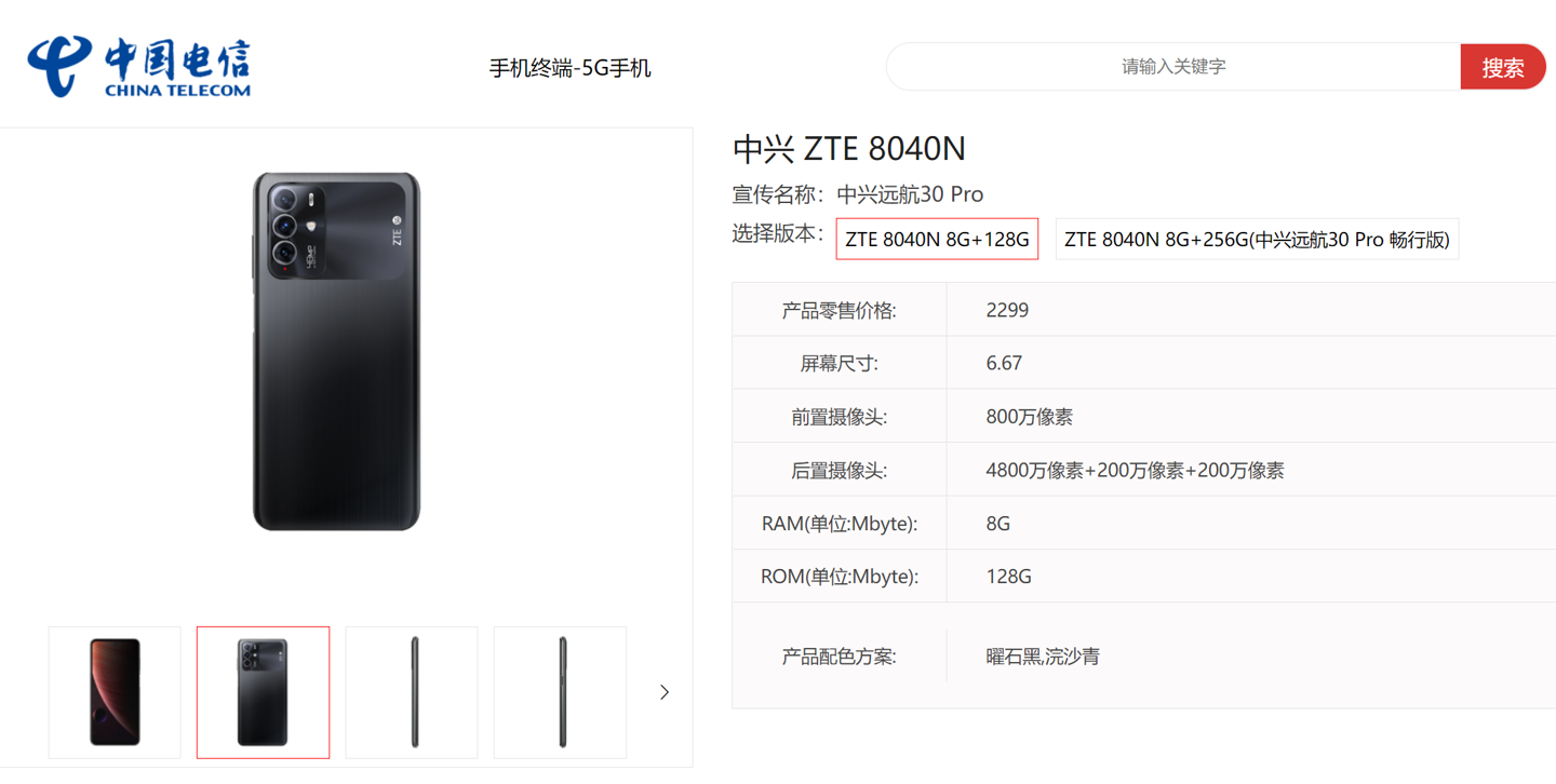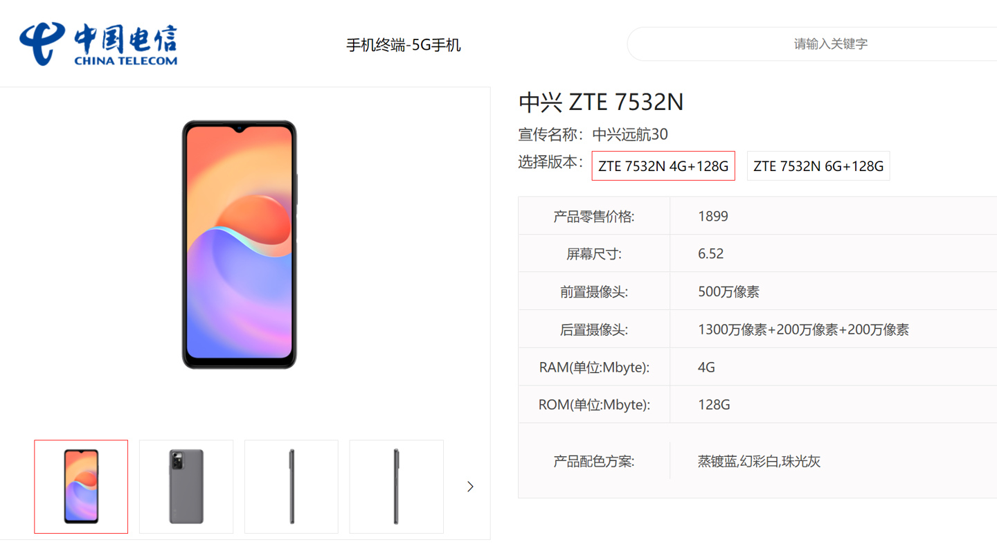 之前,中兴远航30Pro和中兴远航30已登上电信天翼产品库,采用了水滴屏设计。