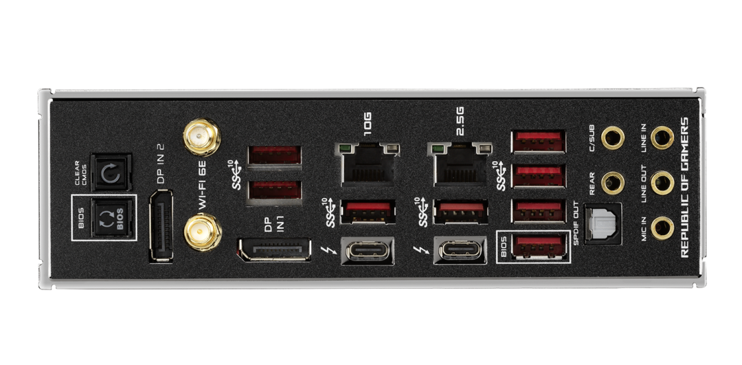华硕 ROG 这款主板自带 RGB 灯光效果,同时配备 ESS ES9018Q2C DAC 音频解码芯片,支持光线输出。主板底部为 DIY 玩家提供多种开光,可切换 BIOS 等。