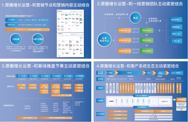 其中,增长运营需要新的团队。“人是核心要素,有了人才能更好地服务,所以我们要建立自己的能力体系,将后端服务与前端软件结合,例如你去打仗,有一把好枪,但你也需要培养神枪手。”韩剑解释,流量很虚,客户感受不到,但通过原圈科技的流量+服务,为案场带来新的到访和成交,这能明显感受到。