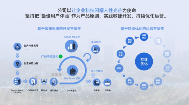 通过这样的思考和实践,他对新一代的科技公司的软件提出了一种新的落地方式:SaaS软件工具应该插拔即用,也就是快速落地产生效果的能力。现在的时代需要敏捷,也要求所有的人敏捷。“要让其他人敏捷,我们自己就要先敏捷。”