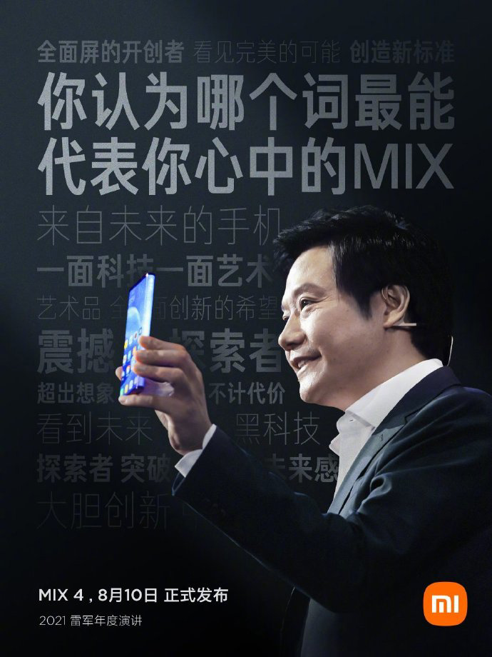 8 月 5 日消息 小米已经宣布 MIX 4 将于 8 月 10 日 19:30 在雷军年度演讲上发布。今天下午,雷军预热小米 MIX 4 的重要特性,这一次,指向未来… 很显然,小米 MIX 4 将搭载 UWB 技术。