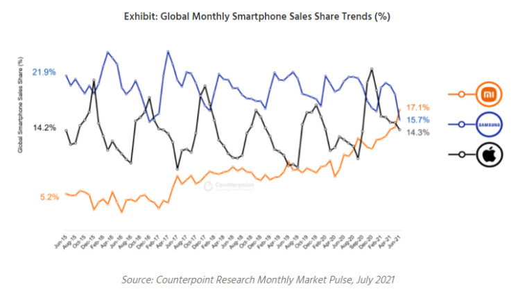Counterpoint 分析师 Varun Mishra 将三星手机的下滑归因于其主要制造中心越南发生的新一波 COVID-19 疫情所引发的生产困境。这导致了三星分销网络的库存短缺。另一方面,小米在中国的 618 购物节期间获得了销售量增长。它填补了三星的预算型和中档手机留下的空白。小米还充分利用了华为因美国的限制措施而导致份额急剧下滑所带来的机会。