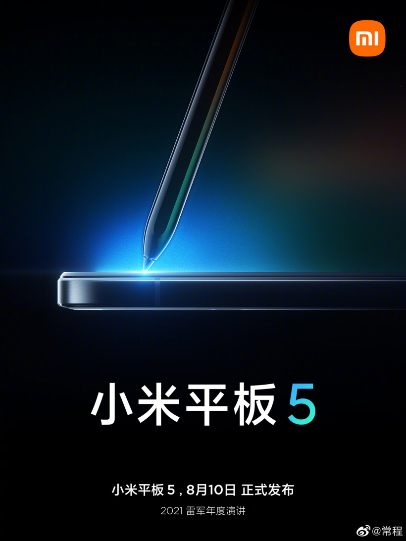 小米平板 5 系列官宣:8 月 10 日与 MIX 4 一同发布,支持手写笔