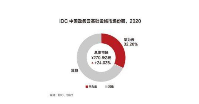 此外,IDC 还发布报告称,中国政务云基础设施市场的总规模达到了 270.6 亿元,增长高达 24.03%,其中华为云在政务云市场占有率 32.2%,连续 4 年蝉联中国政务云基础设施市场份额第一。