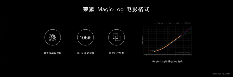 荣耀还全新发布了 Magic-Log 视频格式,首次将电影工业的视频处理流程 AI 化。