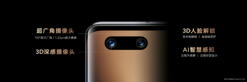 此外,荣耀 Magic3 Pro 搭载前置 3D 景深镜头,支持 3D 人脸解锁和 AI 智慧感知。