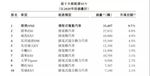 在李想的带领下,理想汽车取得了飞速地发展。根据灼识咨询报告,按2020年的销售额计,理想汽车在国内仅制造新能源汽车的制造商中排名第三,占据2.7%的市场份额。2019年11月开始量产的理想ONE是理想汽车的首款产品,也是其目前销售的唯一一款车型。按2020年销量统计,理想ONE是2020年中国最畅销的新能源SUV,也是前十大最畅销新能源SUV中唯一一款增程式电动汽车。