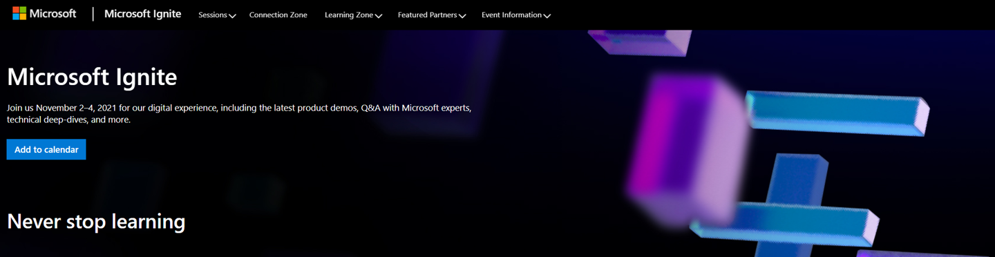 8 月 26 日消息 微软一年一度的 Ignite 大会最新时间确定,将于 2021 年 11 月 2 日至 4 日召开,预计采用线上模式,官方宣传页已上线。