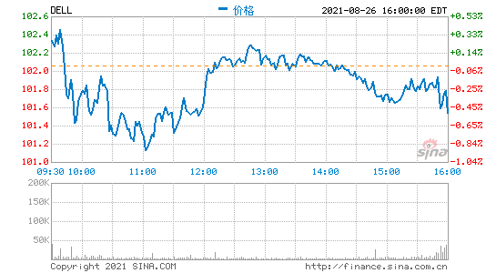 当日,戴尔科技股价在纽约证券交易所的常规交易中下跌 0.51 美元,报收于 101.55 美元,跌幅为 0.50%。在随后截至美国东部时间 26 日下午 5 点 31 分(北京时间 27 日凌晨 5 点 31 分)的盘后交易中,戴尔科技股价再度下跌 3.05 美元,至 98.50 美元,跌幅为 3.00%。过去 52 周,戴尔科技的最高价为 104.62 美元,最低价为 58.88 美元。