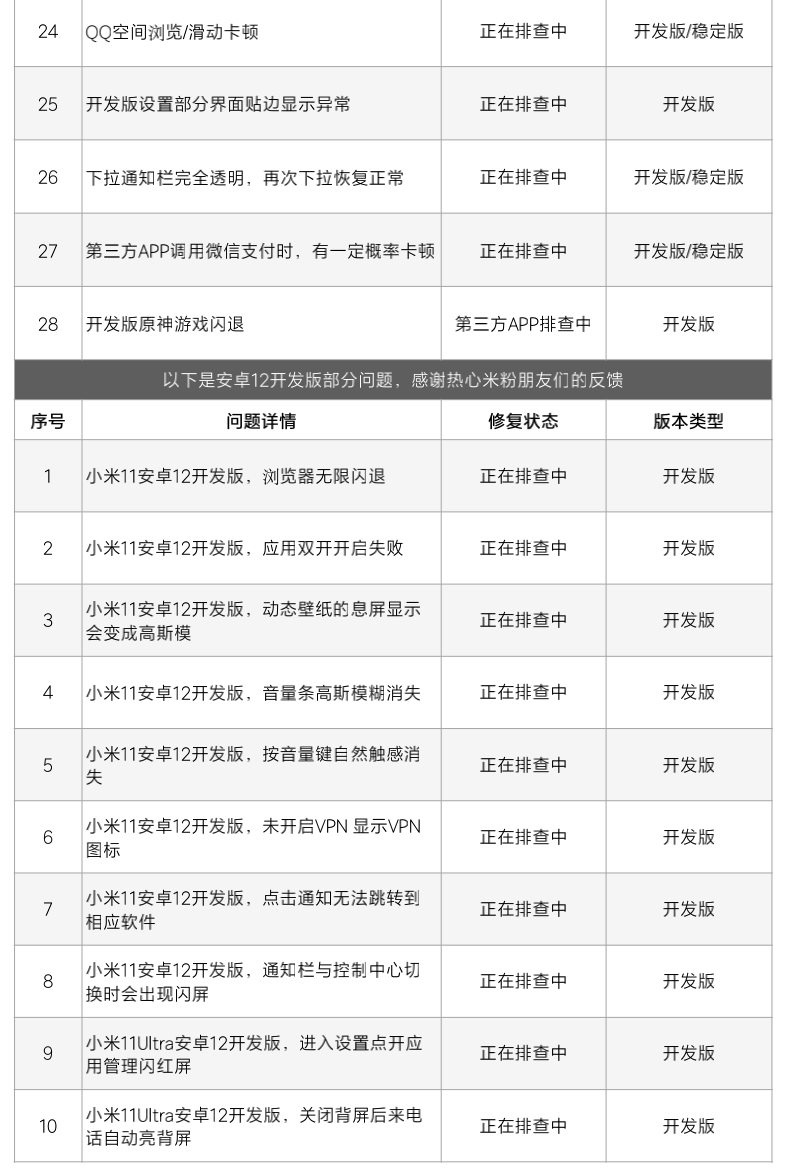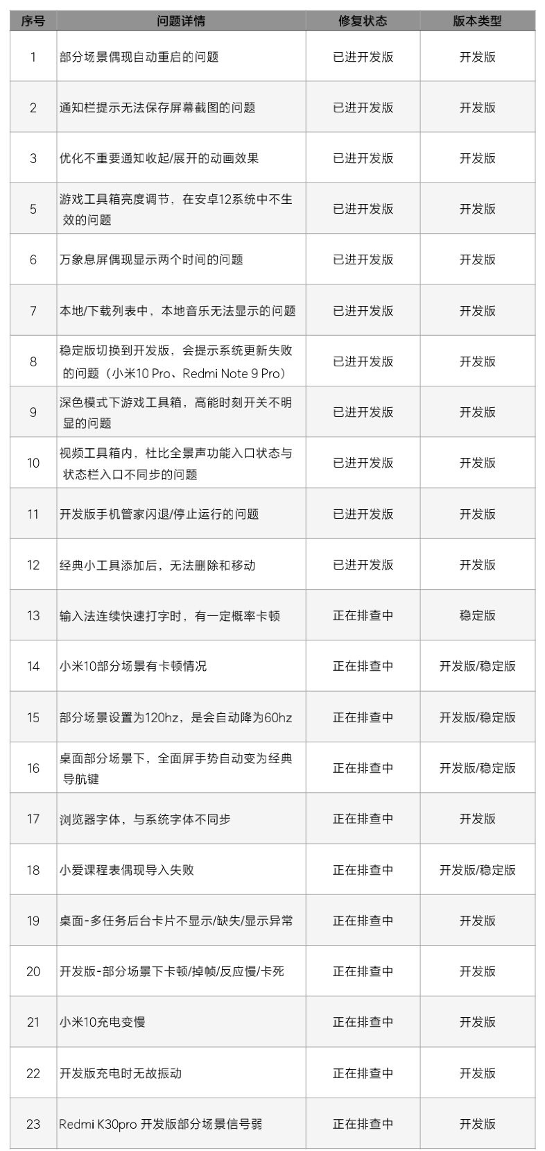 小米推出 MIUI 研发进度公告页面,公布已修复和在查问题
