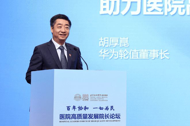 9 月 4 日消息,在国家卫健委的指导下,由北京协和医院主办的“医院高质量发展院长论坛”在北京成功举行,华为轮值董事长胡厚崑进行了“数字技术助力医院高质量发展”的主题分享。就华为在医院数字化转型中扮演的角色,他表示,“华为有信心做好医疗行业数字化转型的同路人。”