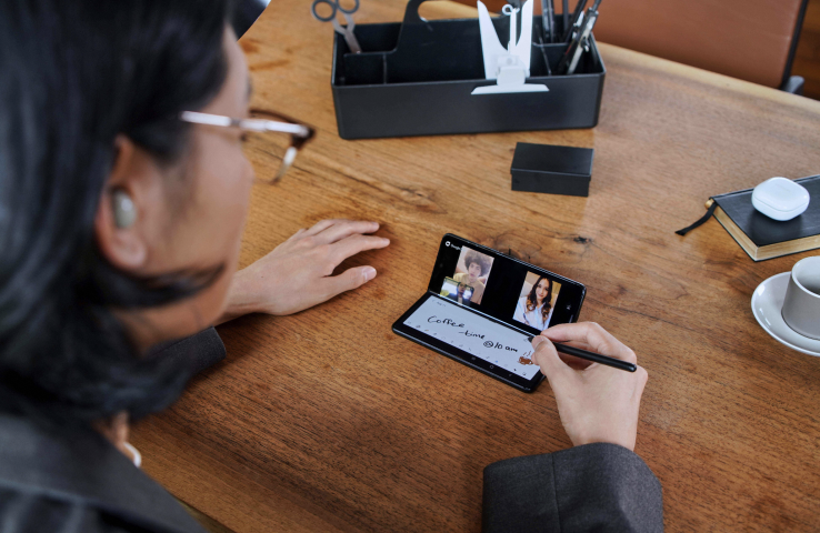 另外,配合三星Galaxy Z Fold3 5G进一步升级了的多任务处理功能、隐形铰链带来的多角度旋停功能,以及S Pen支持的双击快速打开三星笔记、手写转文字等功能,使其在移动办公体验方面大大升级,俨然一种生产力工具。