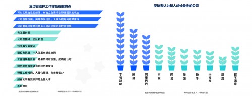 除了C9毕业生,脉脉此次报告也涵盖了多重维度。对于职场新人而言,价值实现的背后关键因素是“成长性”。而判断能否在一家企业中获得快速成长,主要看两个因素:企业的业务发展状况,和企业的用人观及职场晋升通道设计。调研数据显示,字节跳动被近八成职场用户选为成长最快的公司。