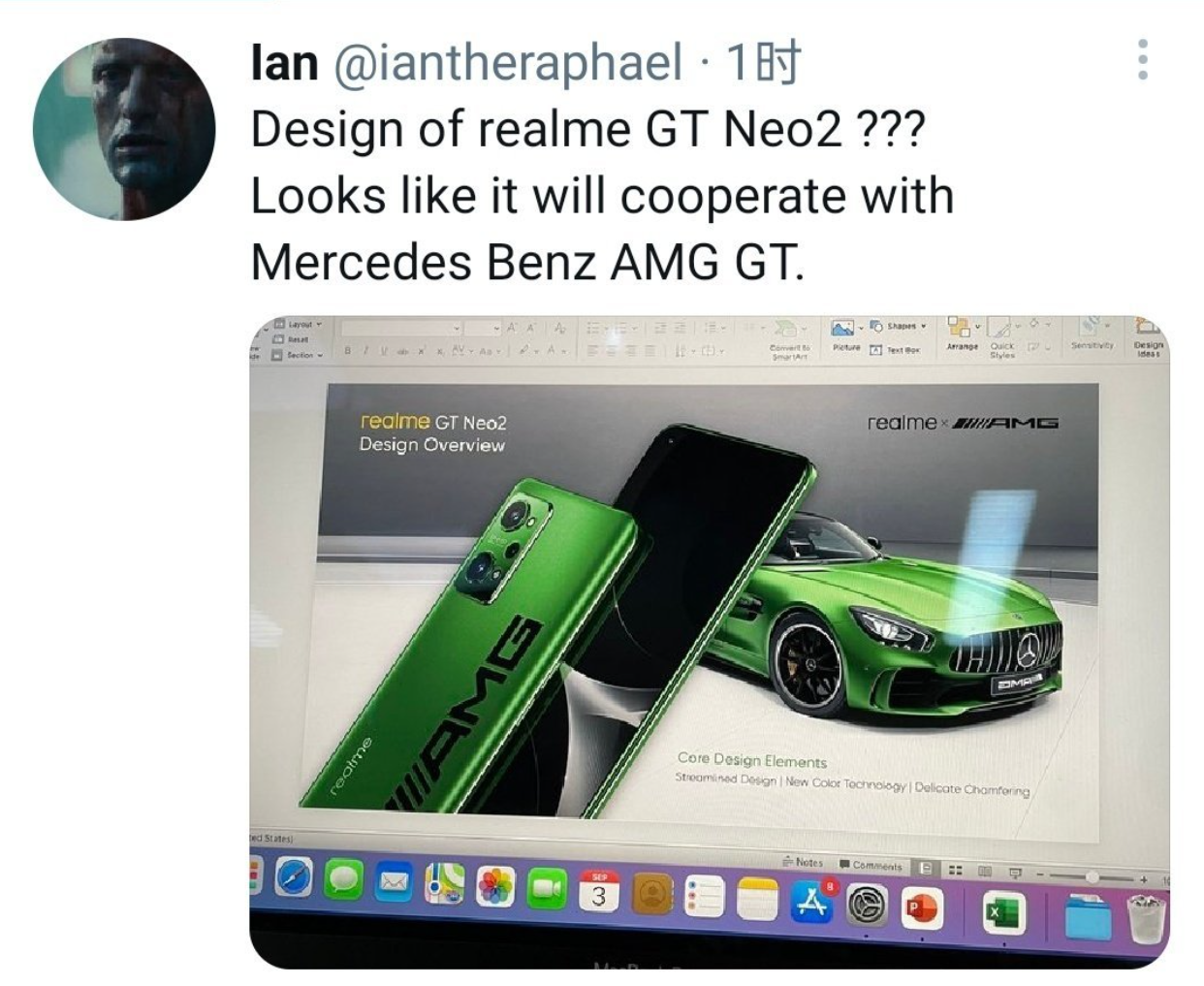 realme 真我 GT Neo2 新配色曝光,有望与奔驰 AMG GT R 联名