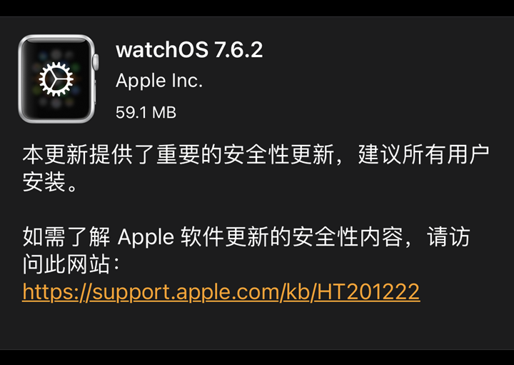 除安全性更新外,watchOS 7.6.2 具体更新内容目前尚不清楚。此前发布的 watchOS 7.6.1 只包含错误修复和性能提升,解决了连接到 Touch ID 设备时无法解锁的问题。