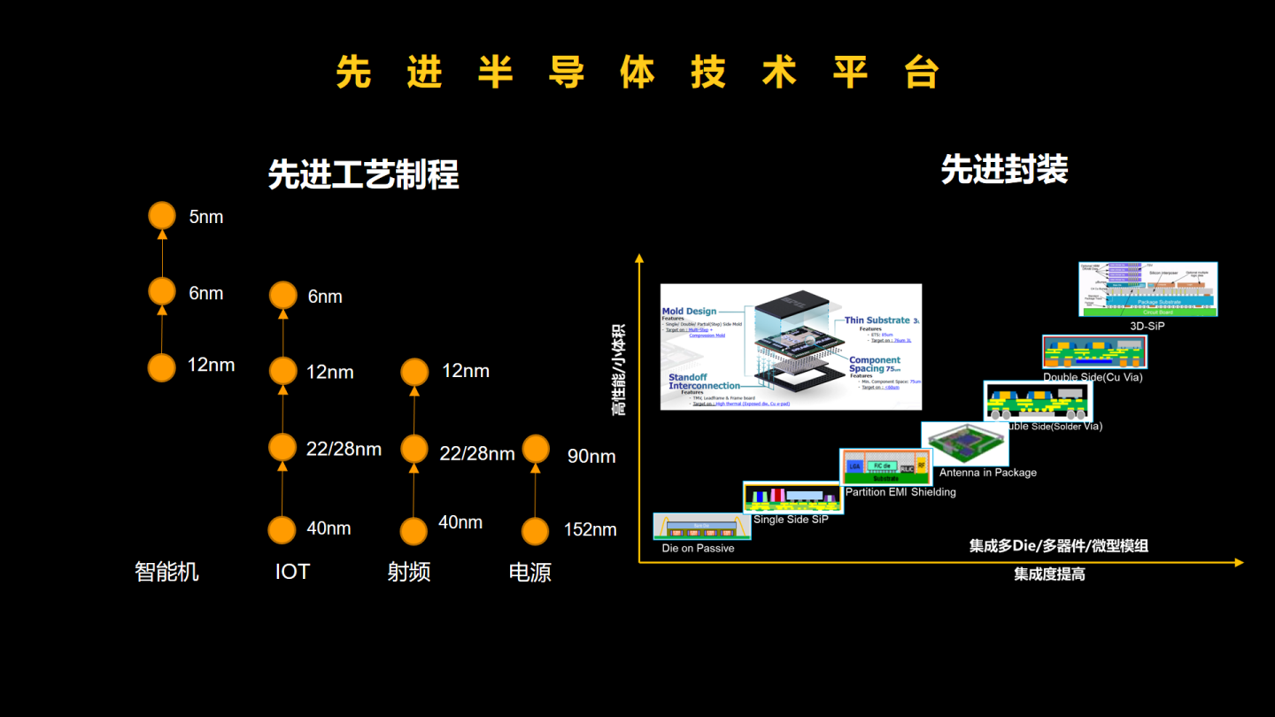 先进半导体技术平台的两个支柱是:工艺制程和封装。展锐提供整体套片方案,包括主芯片在内的所有可见 IC,均自研开发,组合成套片方案提供给客户。