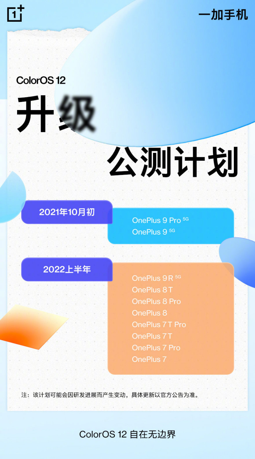 值得一提的是,除一加 9 和一加 9 Pro 之外,其他机型均将于明年上半年获得安卓 12 更新,但也可能因为研发进展而产生变化。
