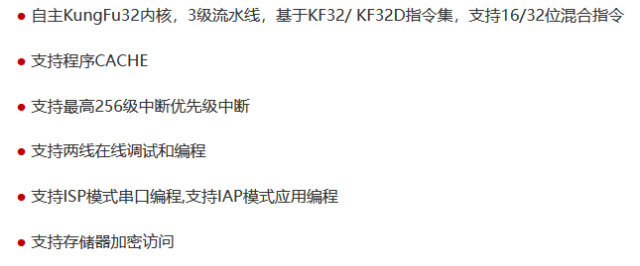 在一些文章中指出了这款芯片使用了国产自主处理器内核架构,而从芯片型号中可以推测出“国产自主处理器内核架构”指的是芯旺微电子的 KungFu32 内核架构,而市面上其它 MCU 芯片大多使用的是 ARM 架构,也有少数 MCU 芯片使用的是 RISC-V 内核。