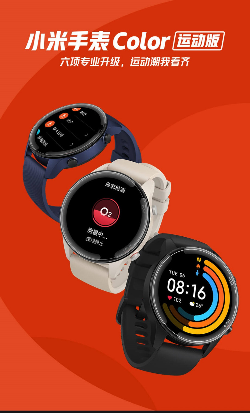 小米还于 2020 年 10 月推出过小米手表 Color 运动版。这款手表售价 699 元,外形更加时尚,内置 GPS 定位功能,支持心率、血氧检测,同时具有多功能 NFC,可以刷地铁/公交卡/门禁等。截至目前,这款手表依旧在售。