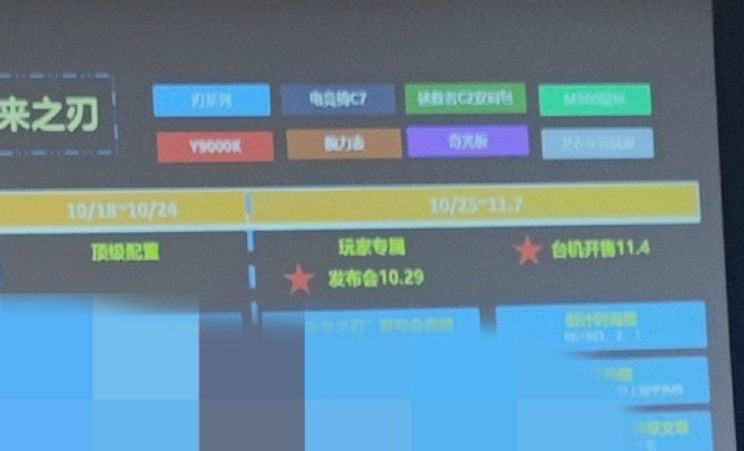 从图中来看,包含拯救者刃系列台式机新品、Y9000K 新配置,以及一些周边产品,台式机新品将于 11 月 4 日开售。