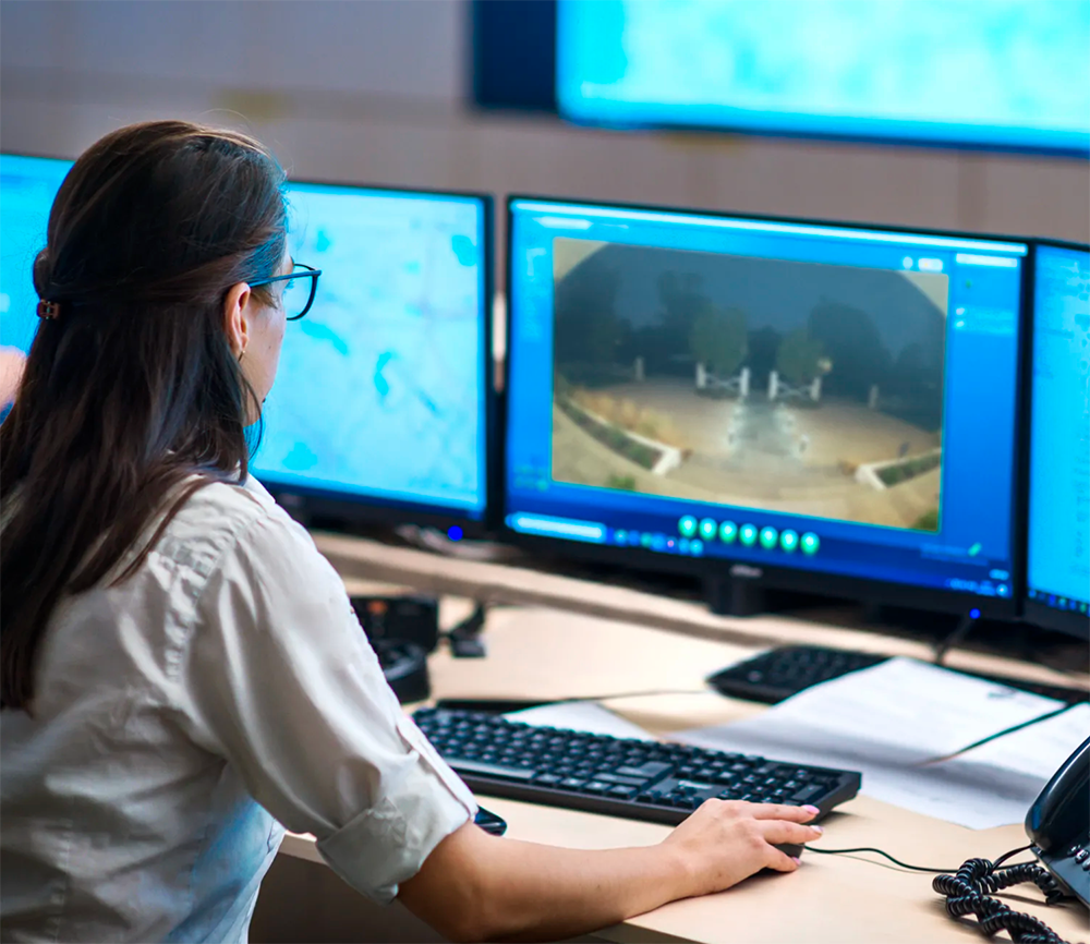 如果当 Ring Alarm 启用摄像头检测到运动事件时,监控公司会收到警报并做出响应,使用摄像头的双向通话等功能与访客交流、打开警报器或发送紧急服务。