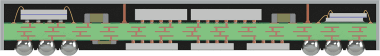 在 DSMBGA 中,组件基于基板的顶部和底部,减小了封装尺寸,并且缩短了器件的信号路径 ,可以调整组件以启用 SiP 。DSMBGA 存在于智能手机和其他产品中,在智能手机中包括用于处理发送或接受信号的数字模块和 RF 前端模块部分。