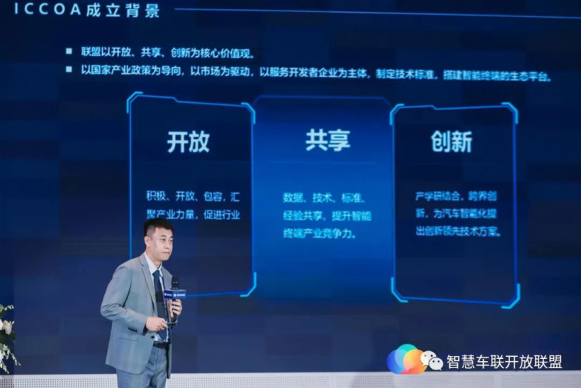 联盟车联工作组组长佘彦荣和数字车钥匙工作组组长王亚忠分别代表联盟工作组发布了【ICCOA 联盟车联接入指南】和【ICCOA 联盟蓝牙车钥匙技术标准】。