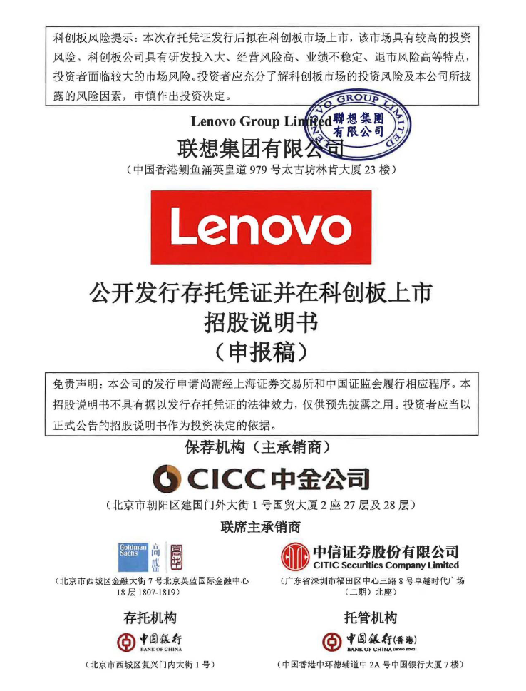 9 月 30 日消息 根据上海证券交易所消息,联想集团有限公司科创板上市申请已获受理,公司已提交科创板公开发行存托凭证招股说明书(申报稿)。