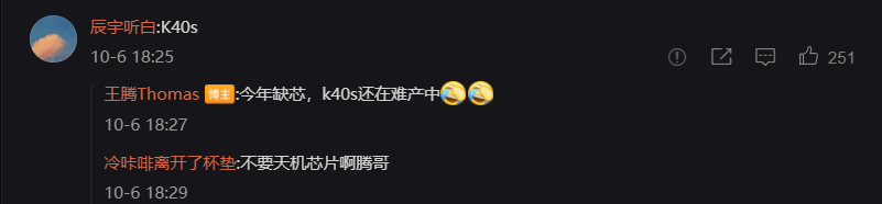 小米王腾:今年缺芯,Redmi K40S 还在难产中