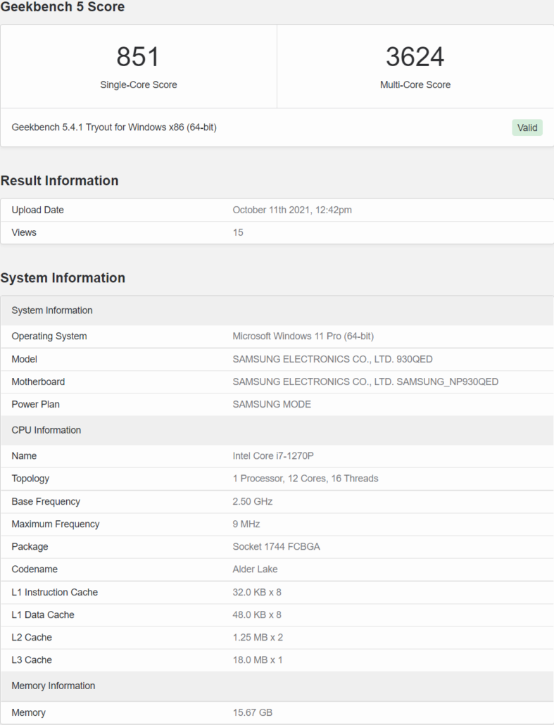 此前有一款型号为 Samsung MP930QED 的 Galaxy Book 曝光,搭载 14 核的 Alder Lake-P 处理器,看来该笔记本将有两个处理器版本。