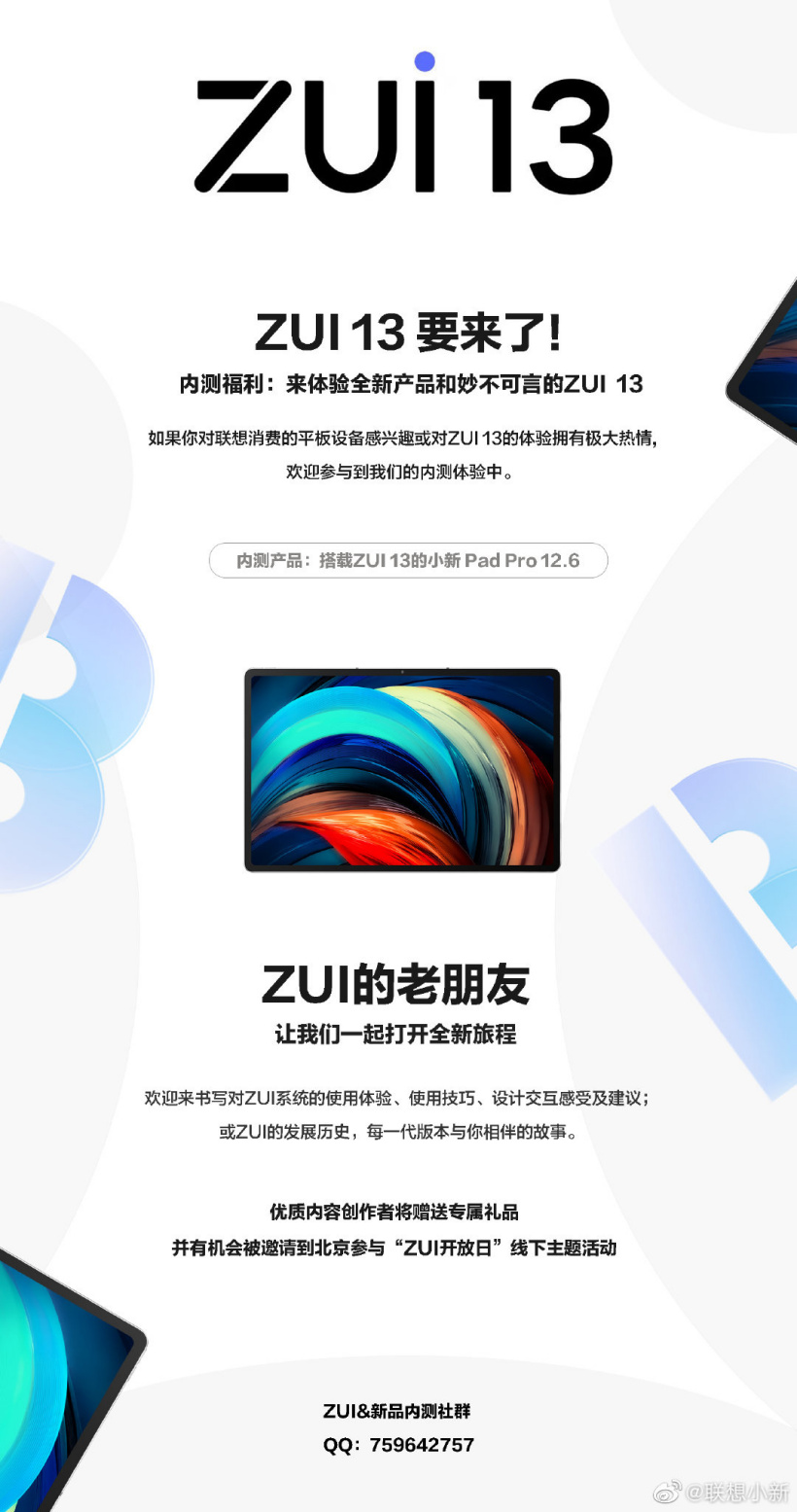 联想 ZUI 13 系统即将随小新 Pad Pro 12.6 内测