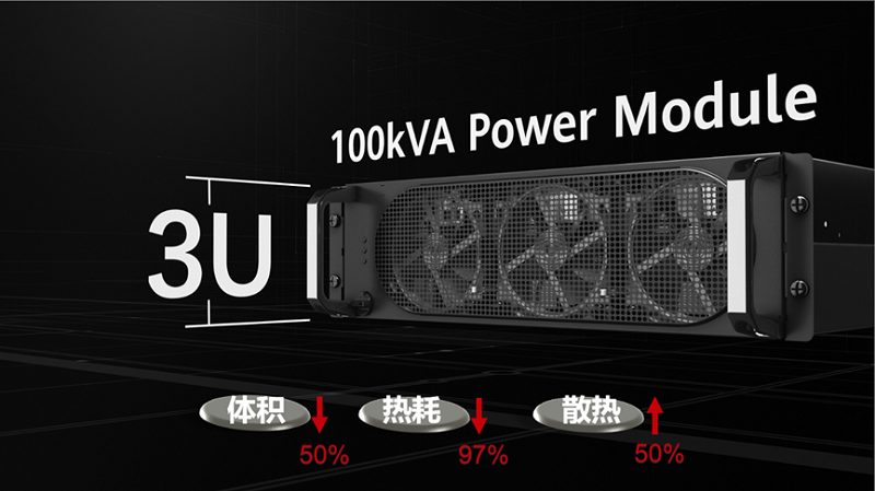 华为表示,目前已经在全球部署多个 UPS 实验室在 UPS 产品各项性能和指标上不断实现创新突破。具体来看,功率模块从 50kW/3U 向 100kW/3U 突破华为 2020 年发布了 100kW/3U 超高密模块化热插拔功率模块,通过多项专利,在功率模块体积、热耗、散热等方面进行了创新设计,实现高密新高度。