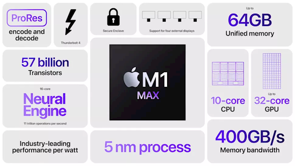 在发布会上,苹果声称 M1 Max 的 GPU(60W)可与英伟达的 GeForce RTX 3080 Mobile(160W)媲美。据悉,苹果 M1 Max 以较低的功率提供同等的性能。该公司还提供了与 GeForce RTX 3080 的 100W 版本的比较,其中 M1 Max 显示功耗降低了 40%。就目前而言,我们应该对苹果公司的数字持谨慎态度,因为该公司没有提供任何说明,只是使用了“选定的行业标准基准”。