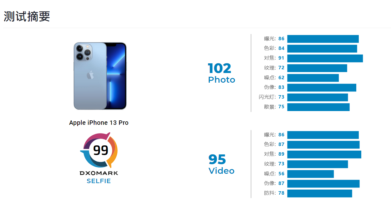 苹果 iPhone 13 Pro DXOMARK 自拍相机评分公布:99 分