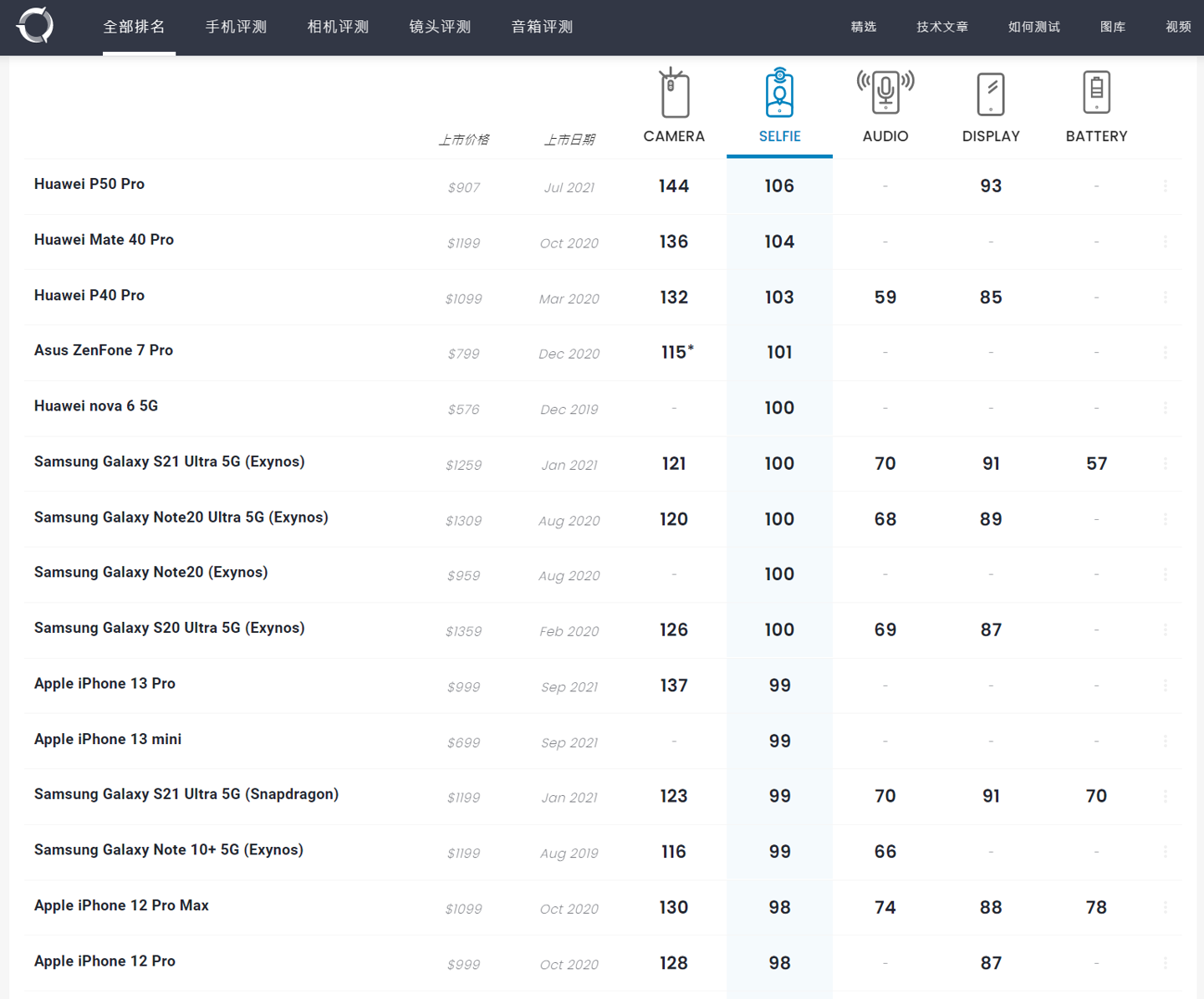 10 月 21 日消息,DXOMARK 近期发布了《苹果 iPhone 13 Pro 自拍评测:优秀的自拍视频》文章,表示,苹果 iPhone 13 Pro 的自拍得分为 99,在 DXOMARK 自拍排名中名列前茅。整体性能与去年的 iPhone 12 系列非常相似,但 iPhone 13 Pro 的自拍照片分数更高,这要归功于准确的主体曝光、宽景深以及高光和室内拍摄的良好细节。