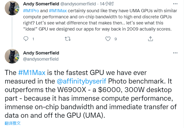 Affinity 基准测试:苹果 M1 Max GPU 在部分任务中击败 6000 美元的 AMD Radeon Pro W6900X