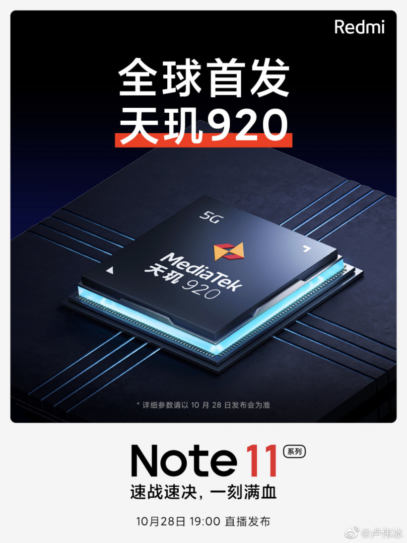 Redmi Note 11 系列官宣:首发天玑 920 处理器,A78 双大核