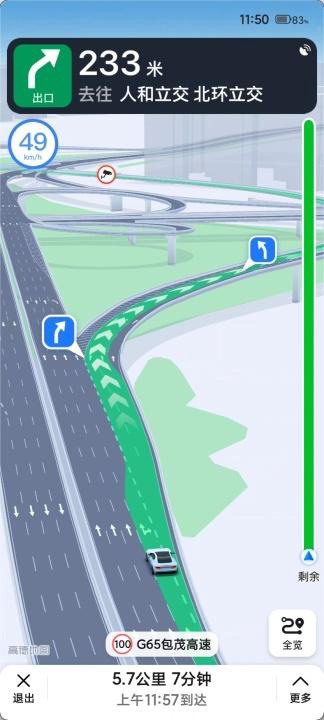 高德车道级导航高清版尽可能地克服了当前支持高精度定位硬件、芯片数量较少的制约,让更多用户即便在定位精度有限的条件下,也能够体验到高精细的导航指引服务。